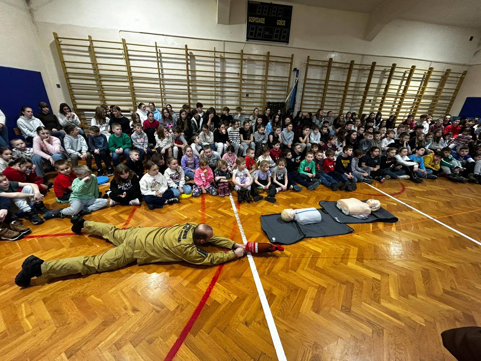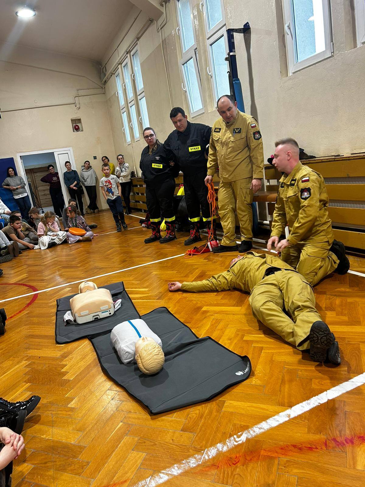 Podczas spotkania strażacy przypomnieli również numery alarmowe, zaprezentowali przebieg udzielania pierwszej pomocy, wykonali resuscytację krążeniowo-oddechową i chwyt Heimlicha oraz pokazali sprzęt, który wykorzystują w swojej codziennej pracy.